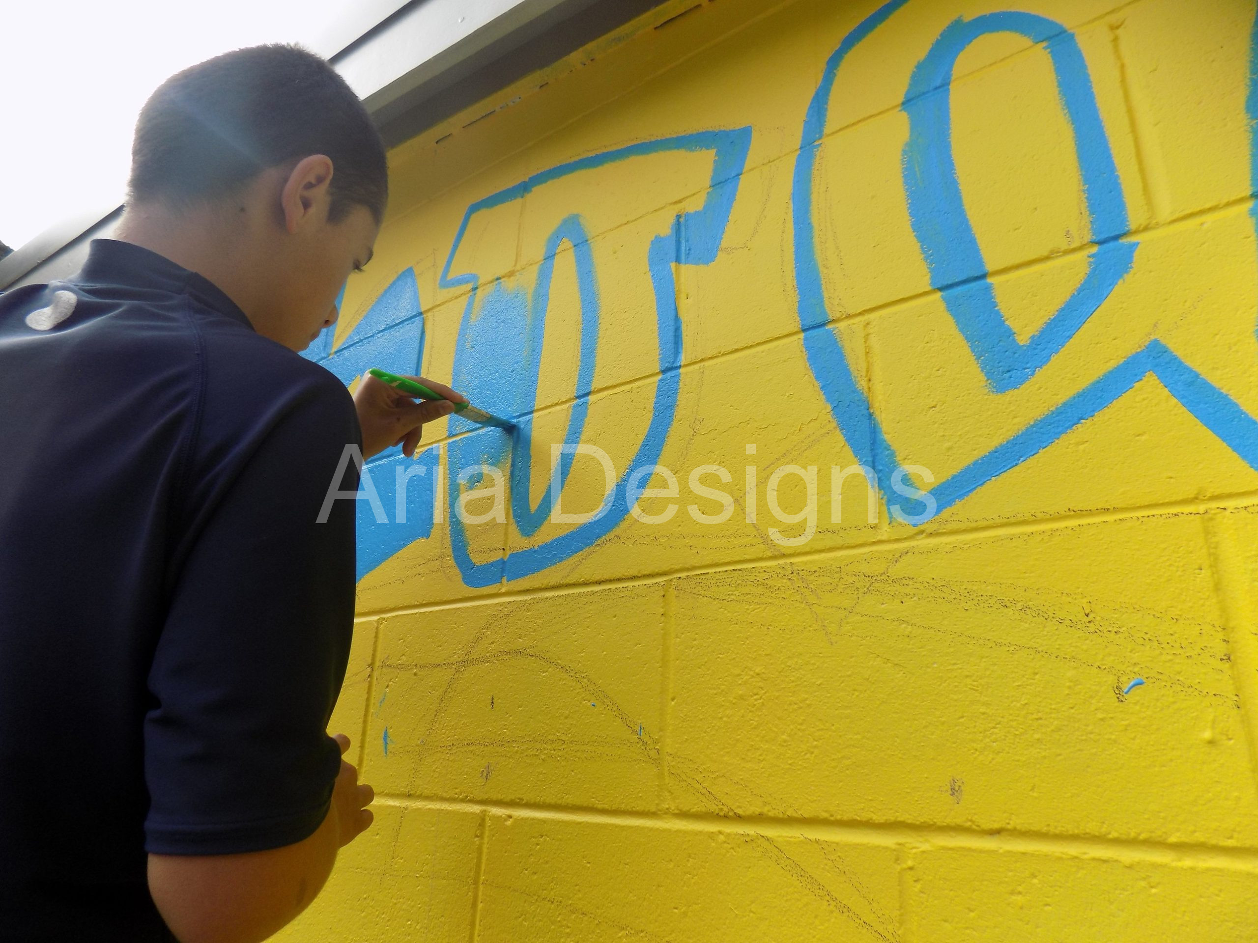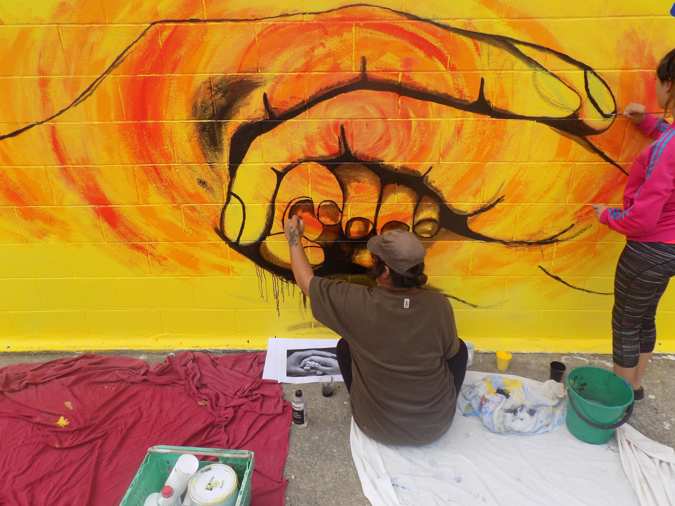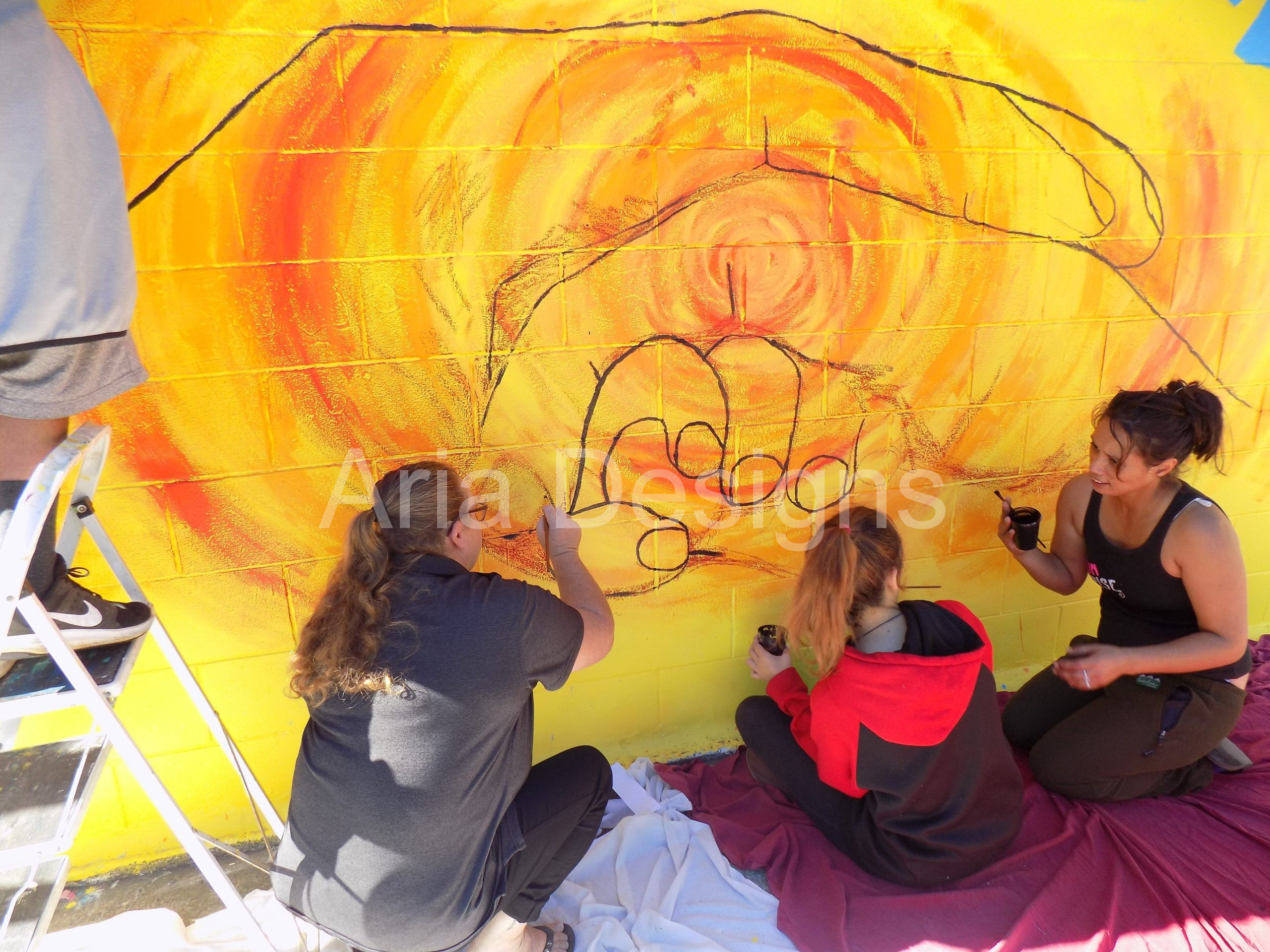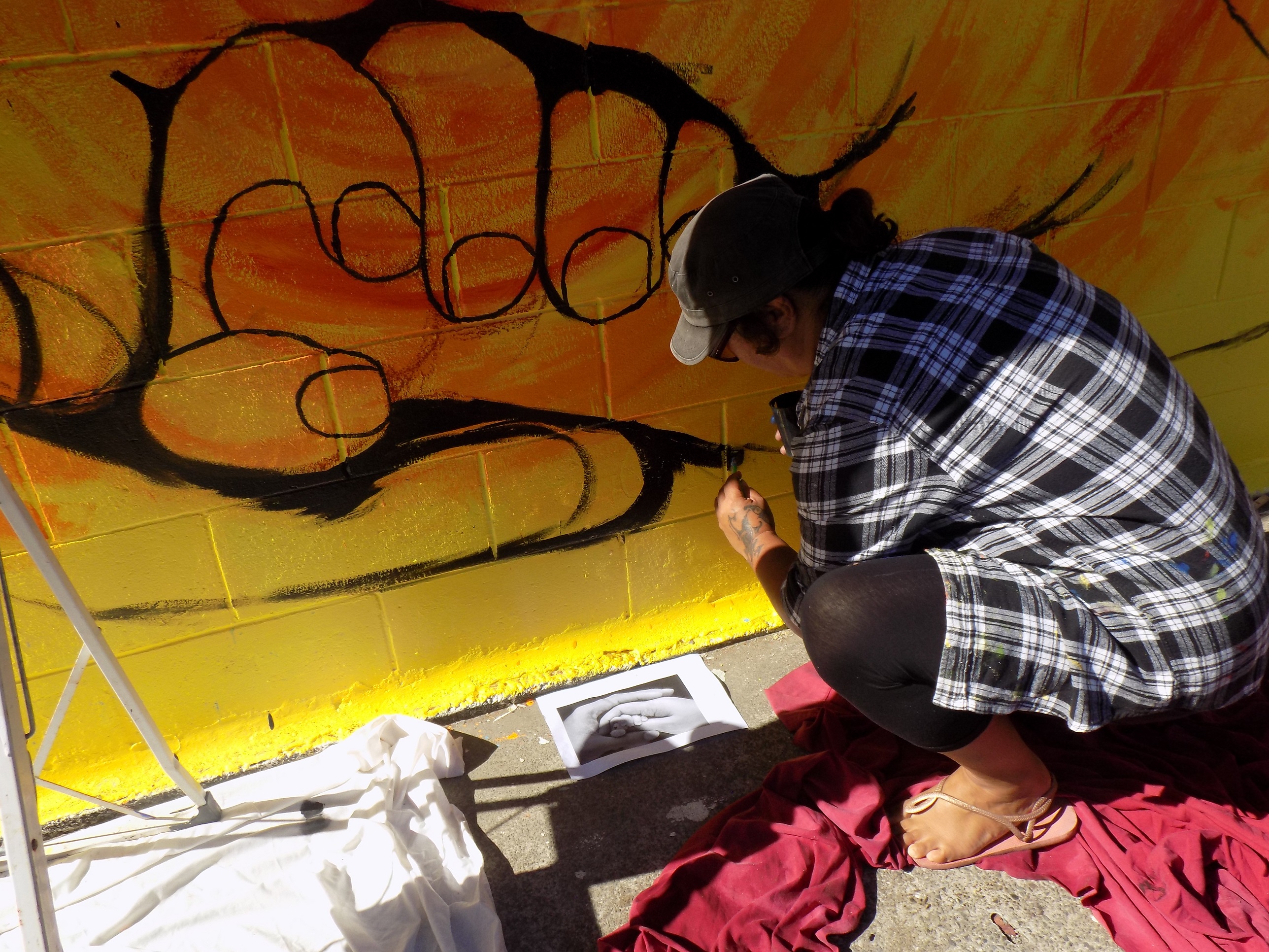 This slideshow captures the creative process of the mural being applied to the cinder block wall.