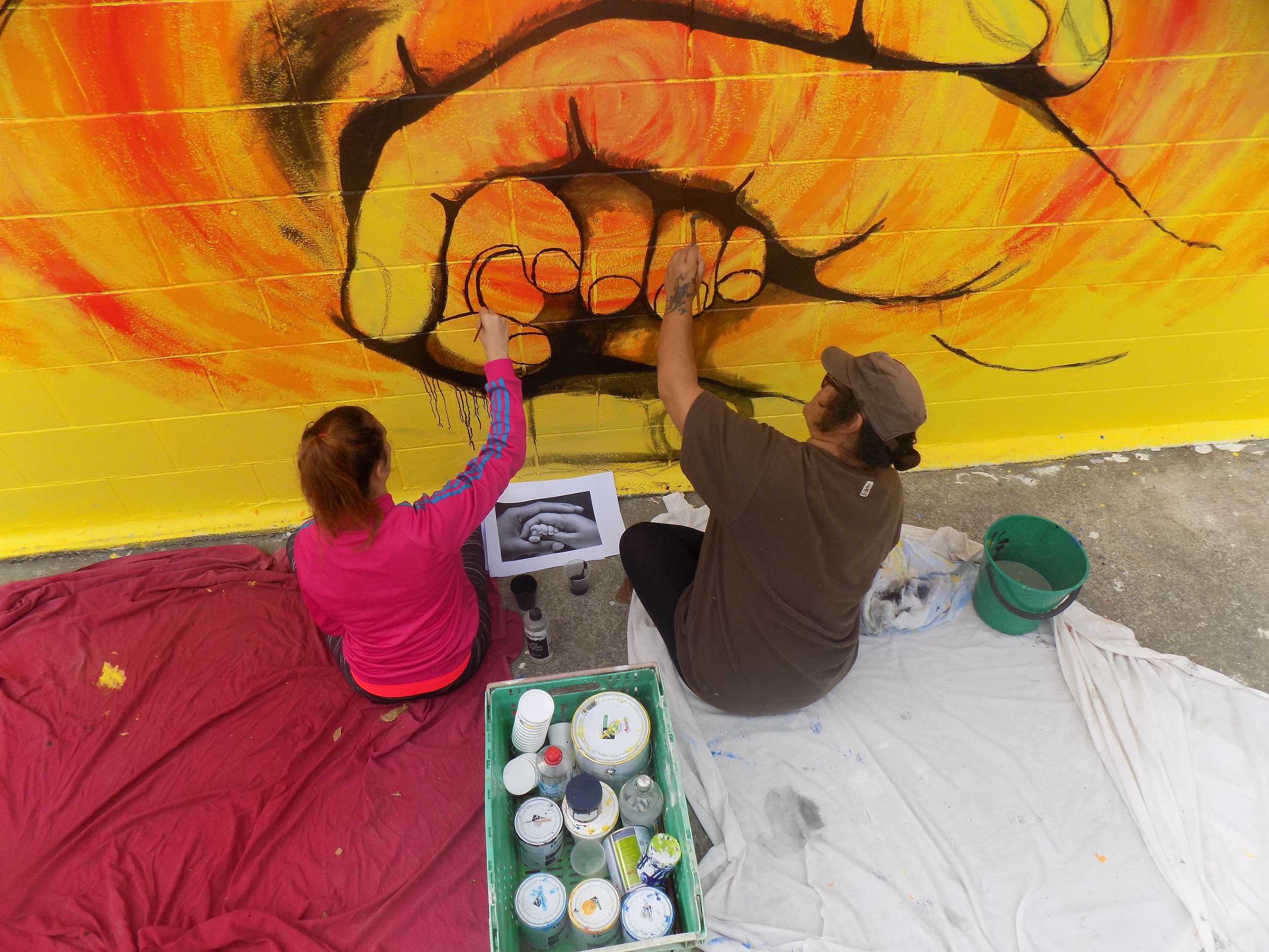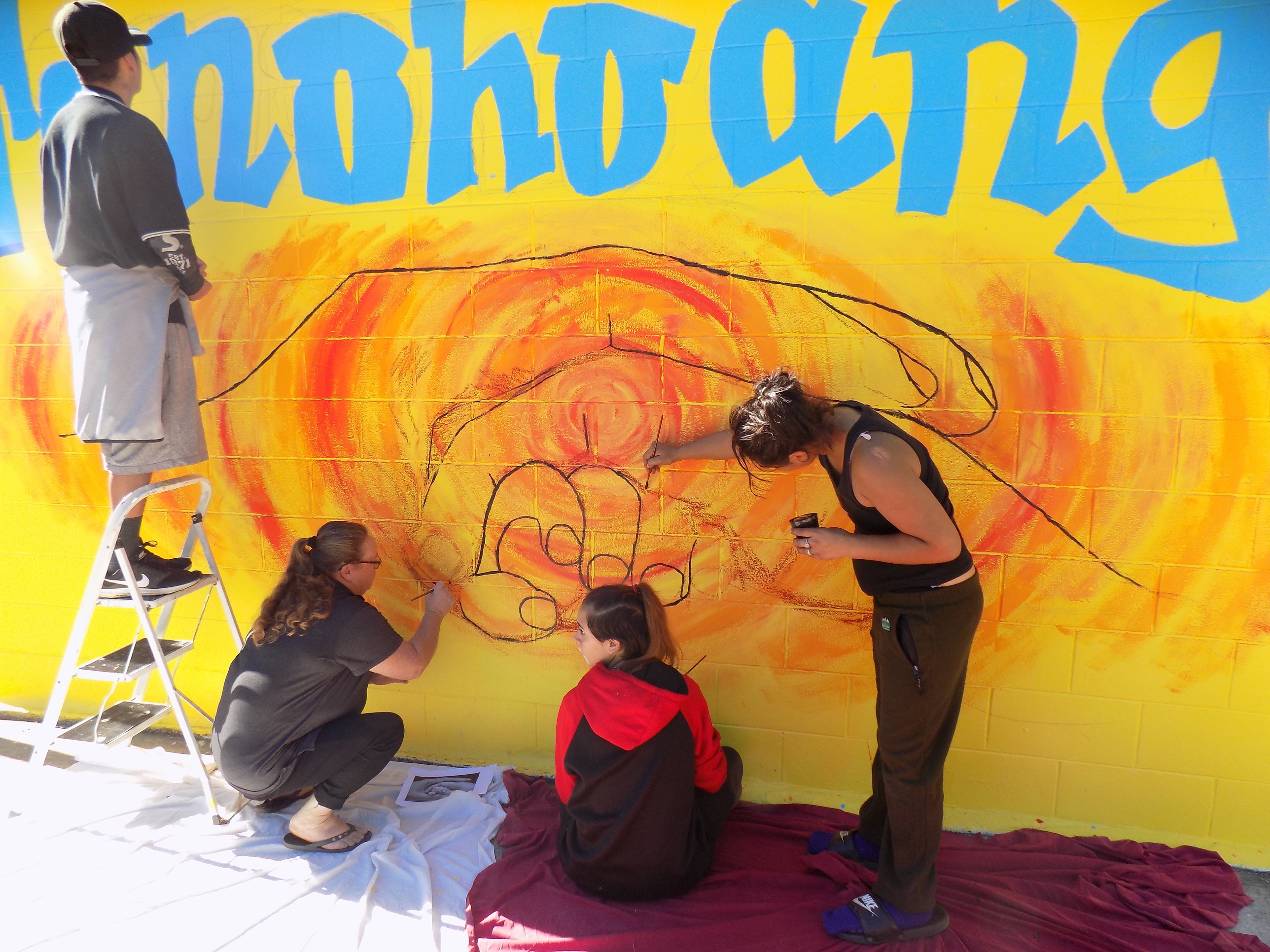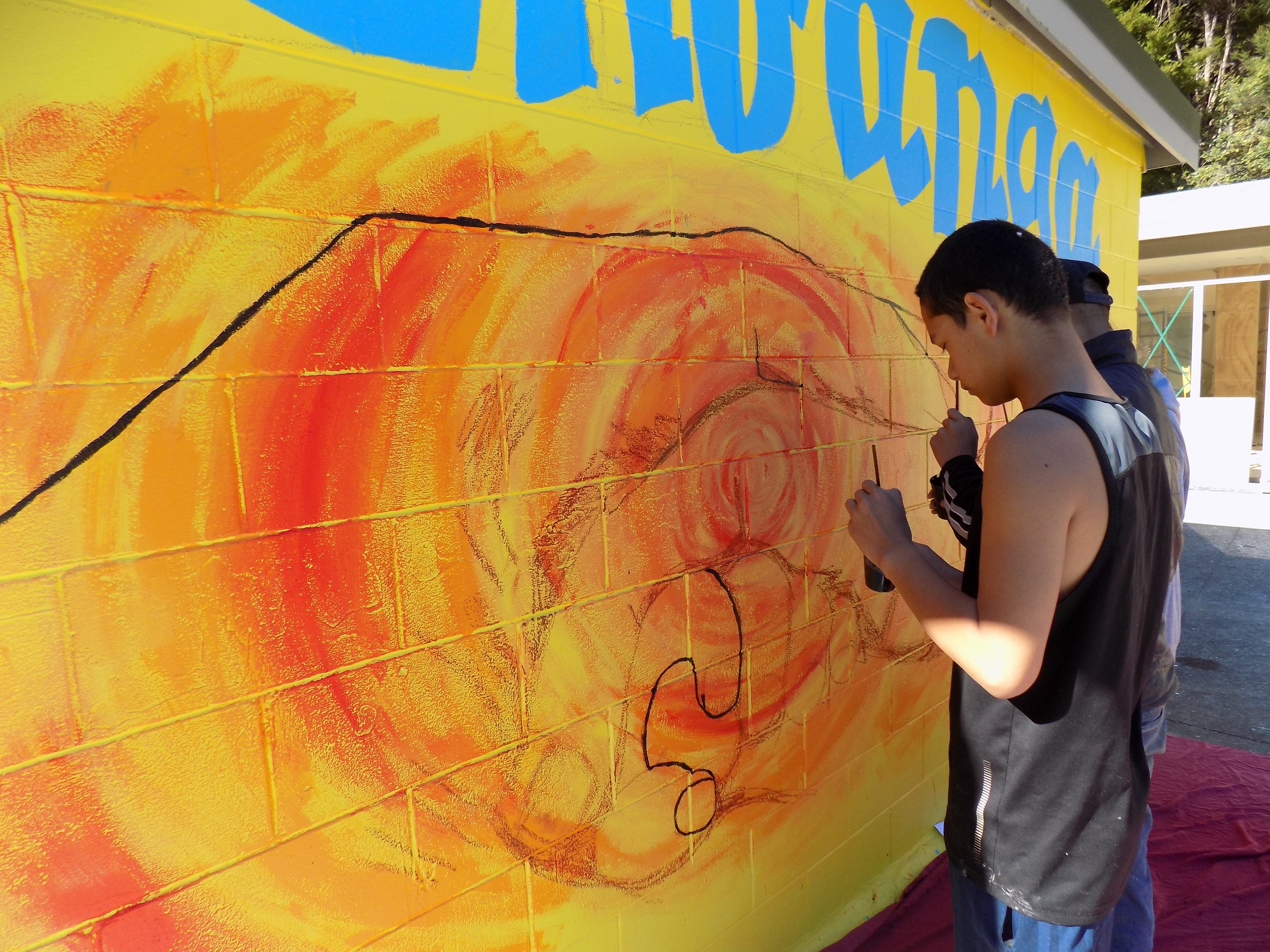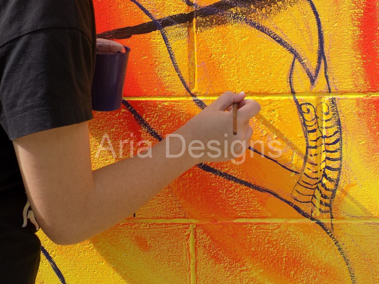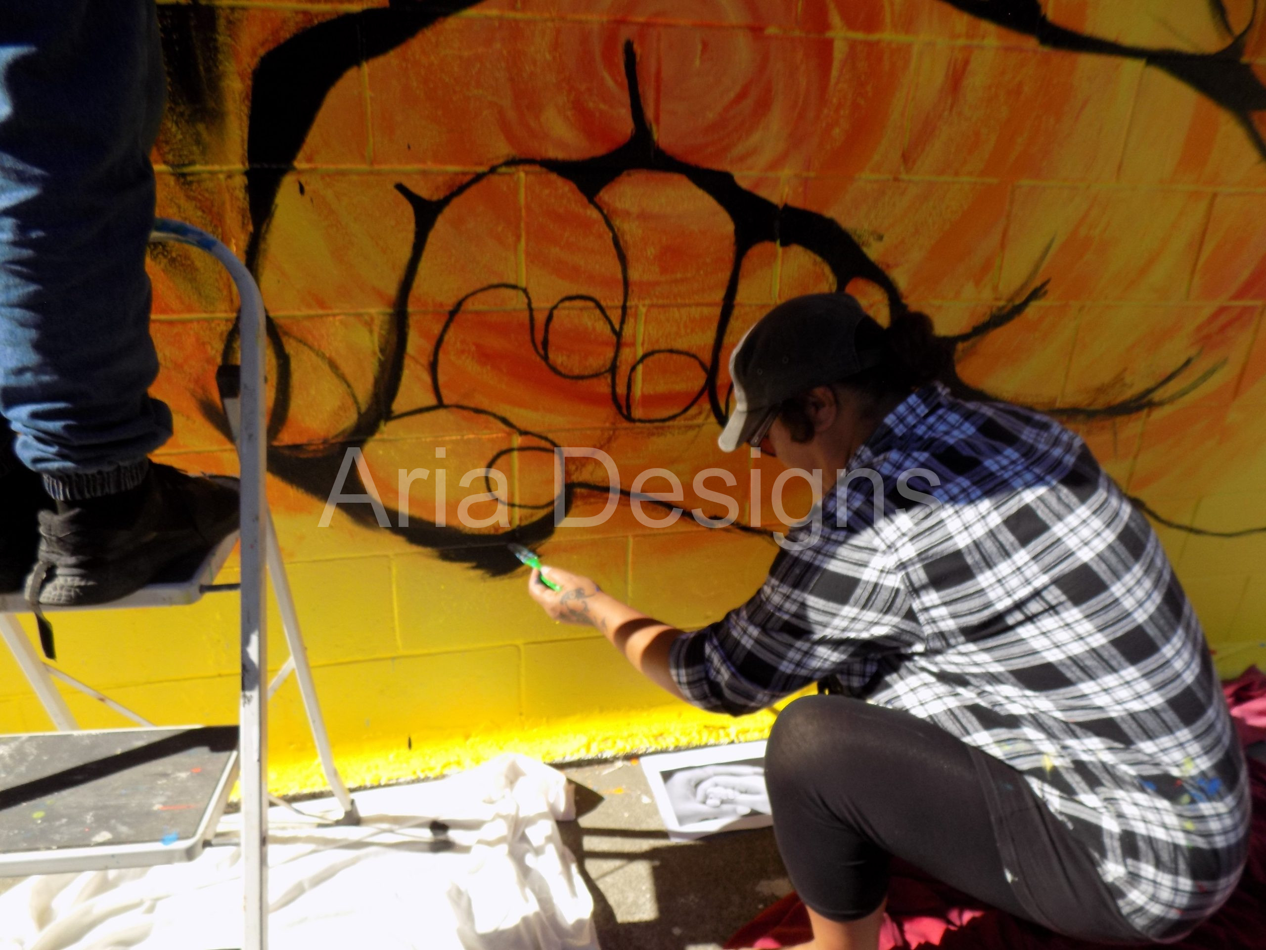 This slideshow captures the creative process of the mural being applied to the cinder block wall.