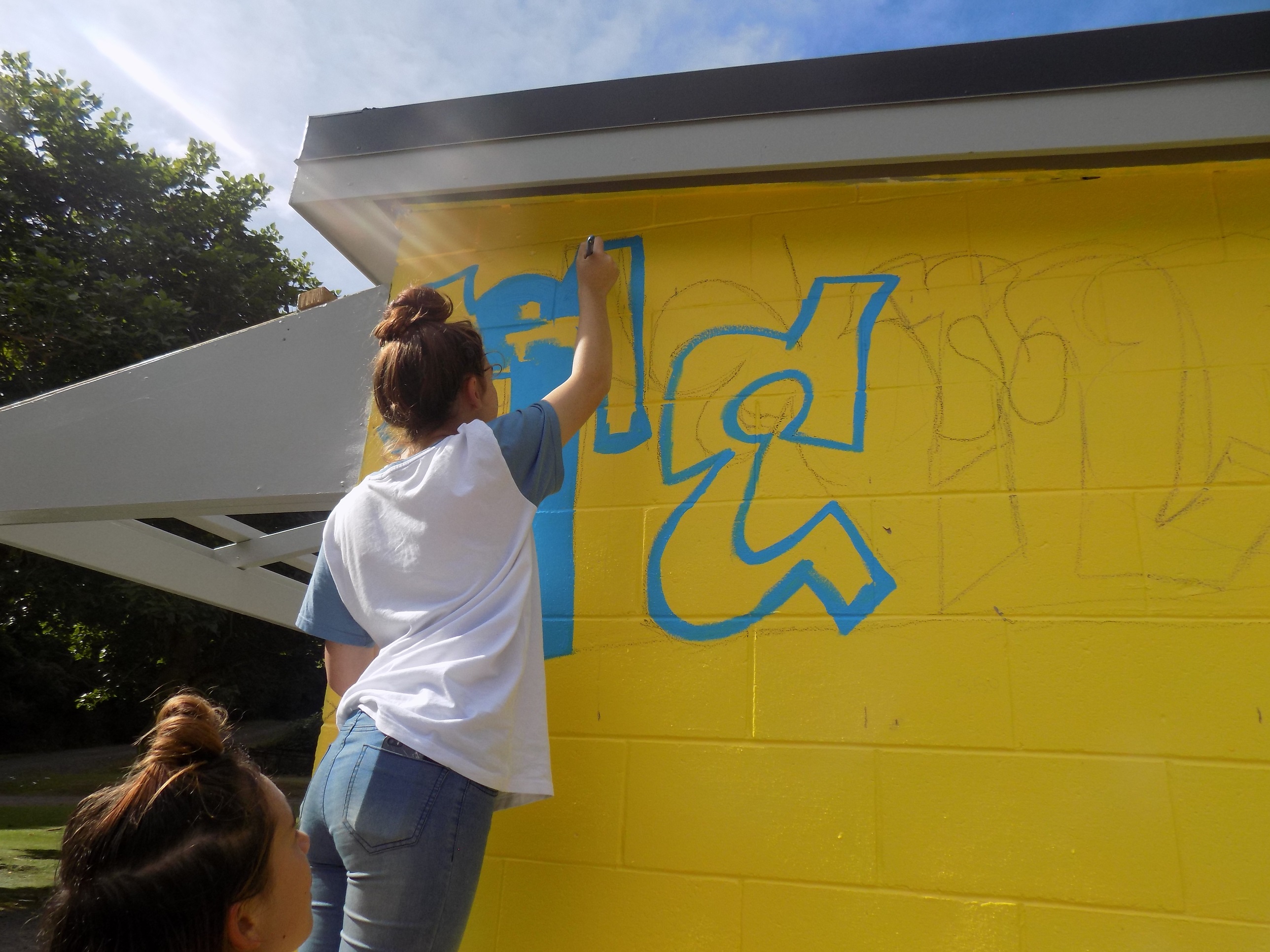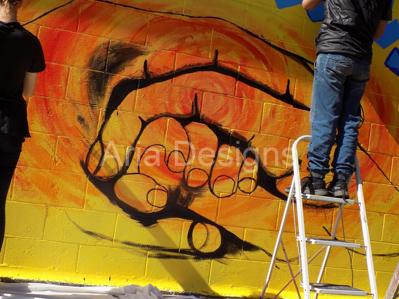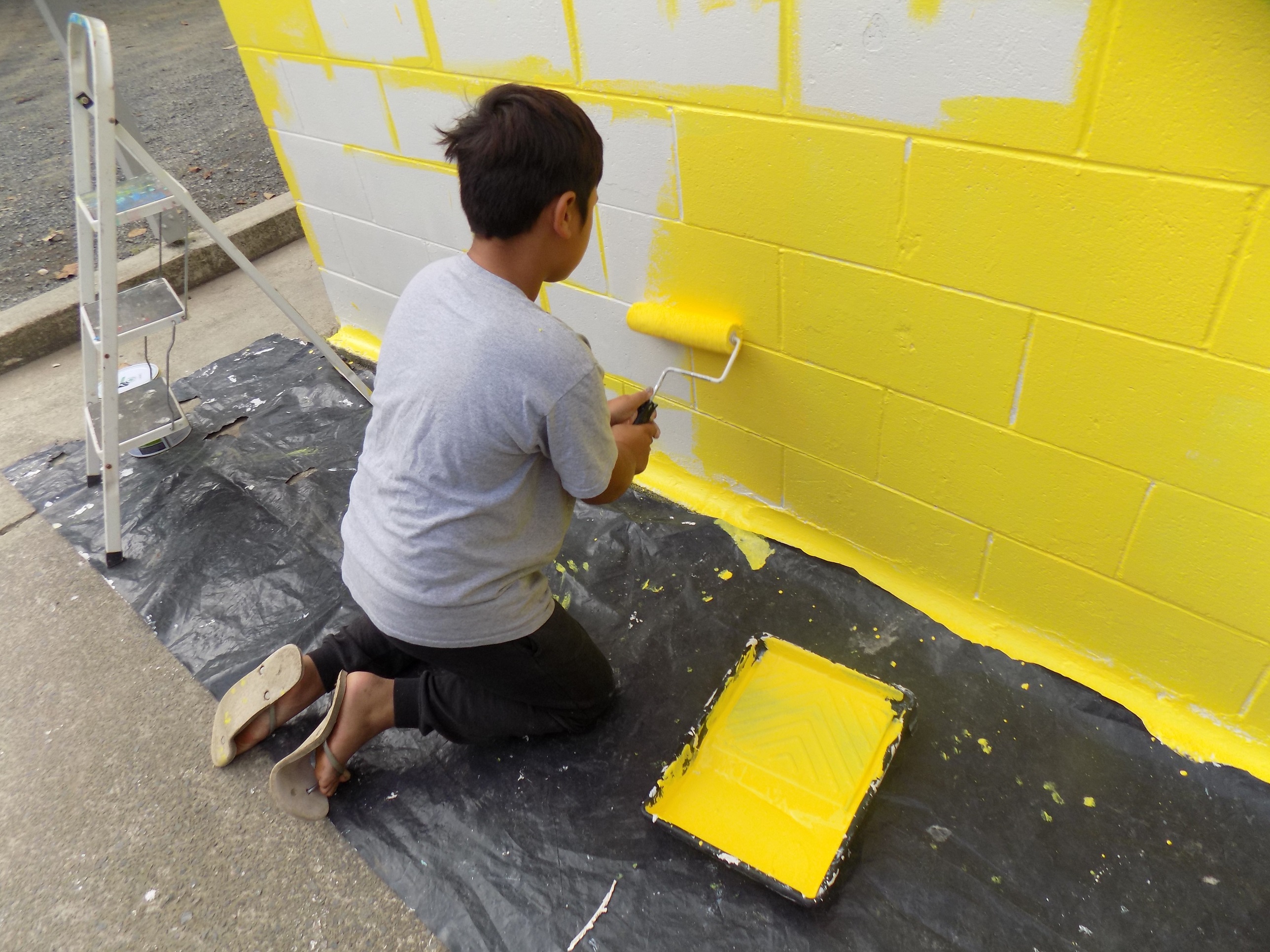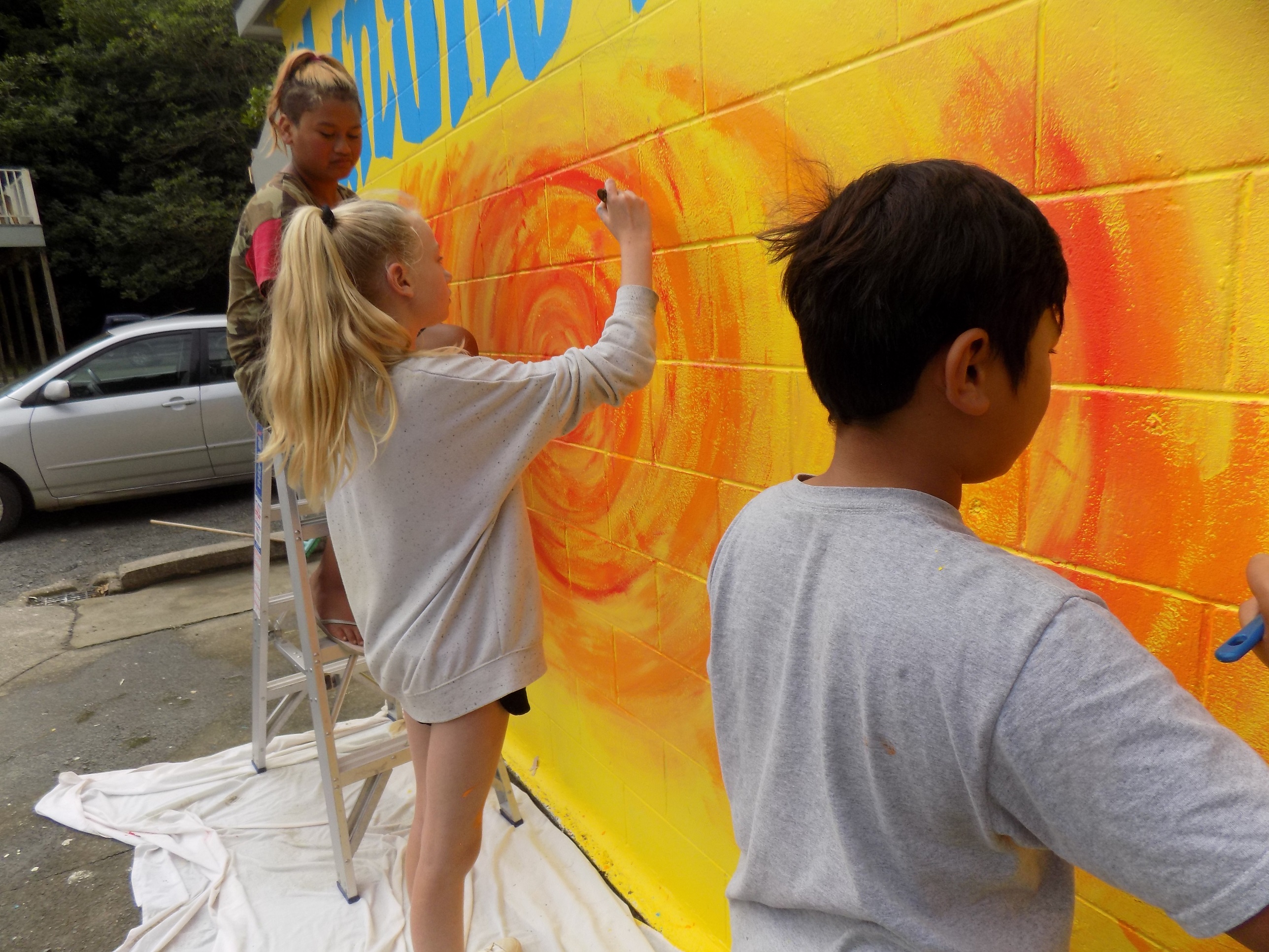 This slideshow captures the creative process of the mural being applied to the cinder block wall.