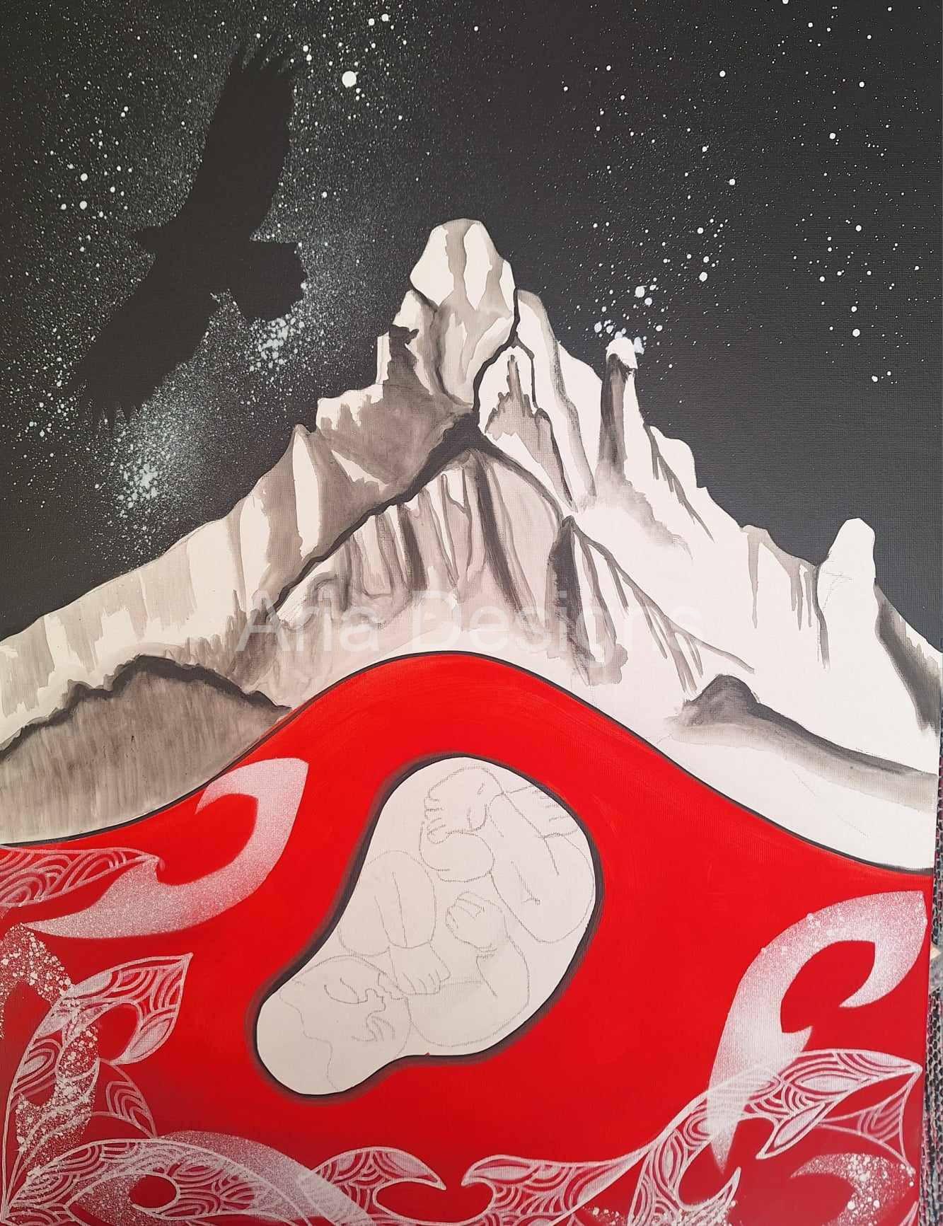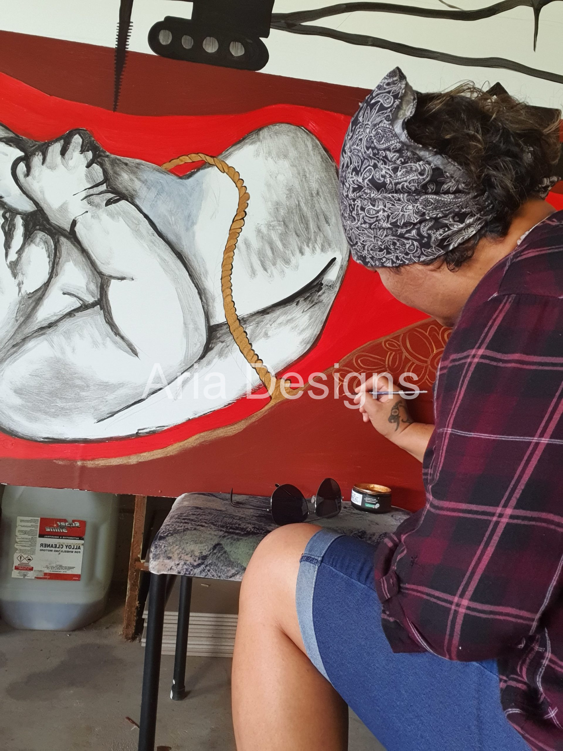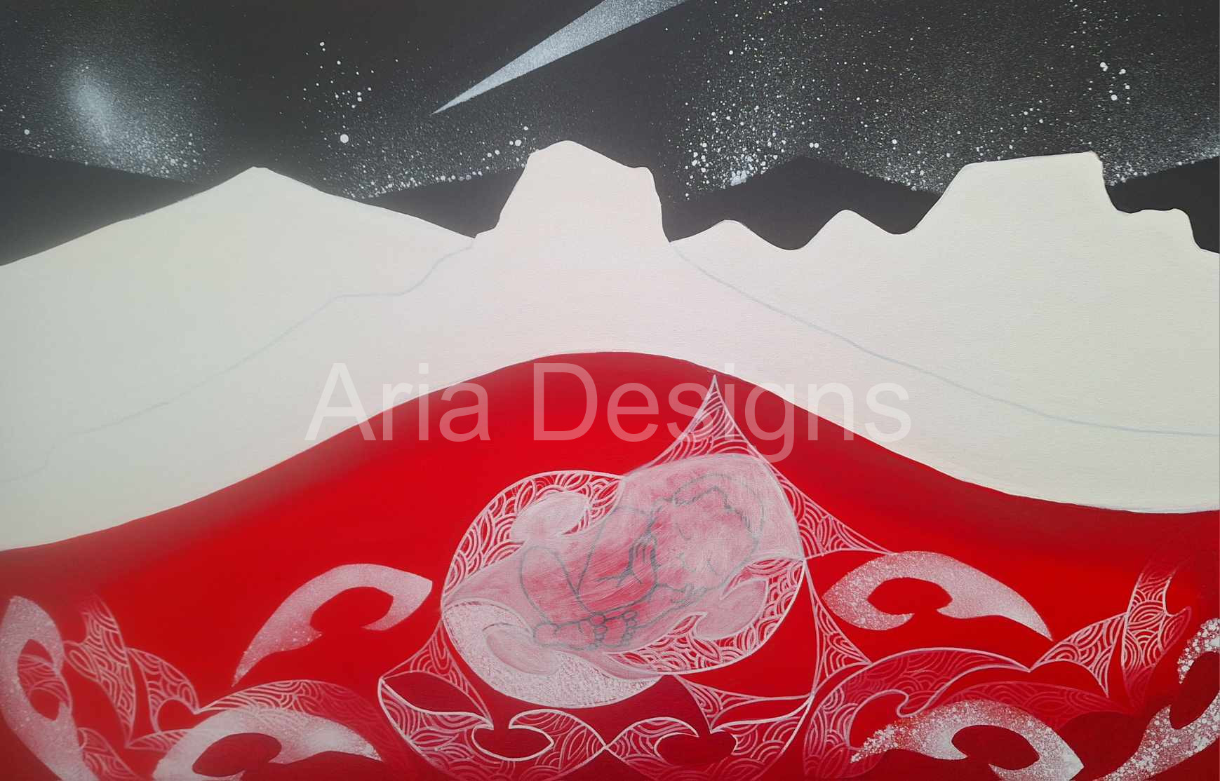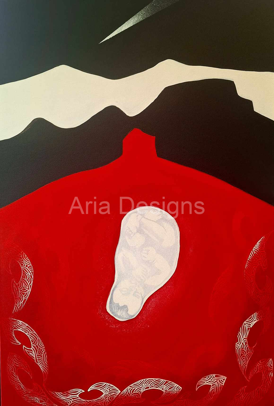 Represented here is Mana wahine: the holders of whenua, and the divine womb – Te Whare Tangata.