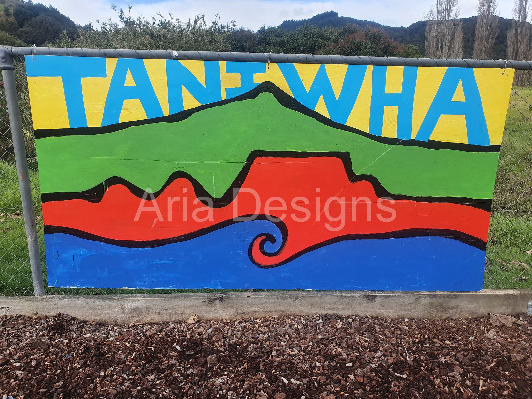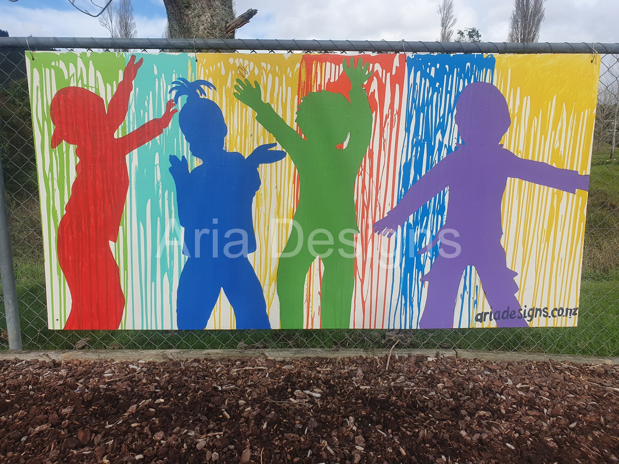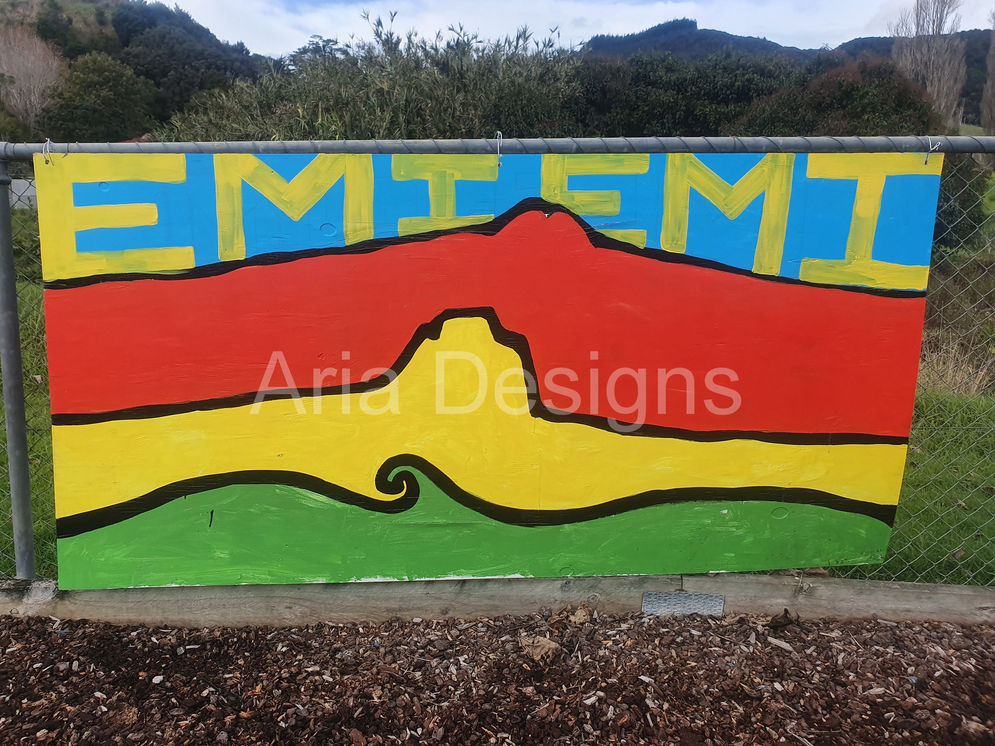 The creative process involves firstly coming up with a relevant visual ideas. Then transferring that chosen image onto plyboard in black vivid for the tamariki to paint in at the festival. This is what we call live art.