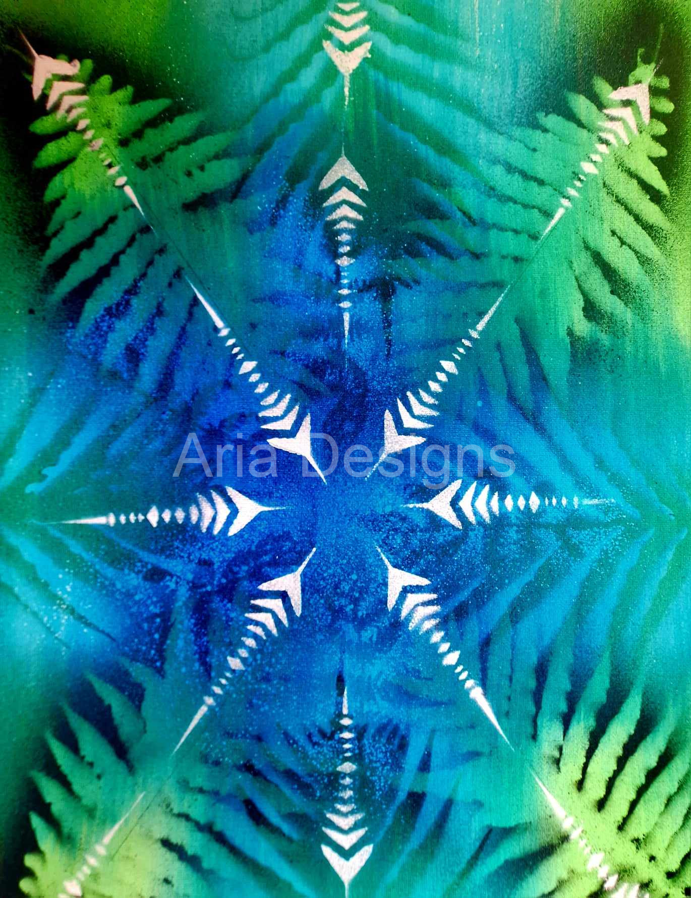 Binding earth to sky and night to day – Rangi is represented by the whetu and Papa the fern fronds, laid out in layers to create a unified, interconnected whole. Through my soul’s eyes, there is no separation.