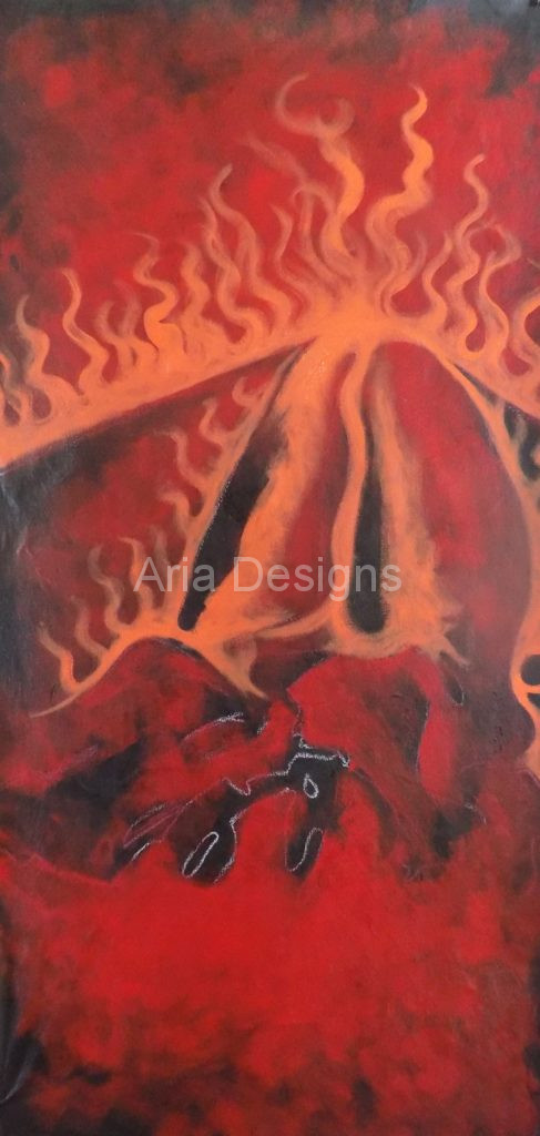 In the creative process of the painting shown here the interplay of light and dark, hot and cold, black and red merge as a fluid, unified whole.