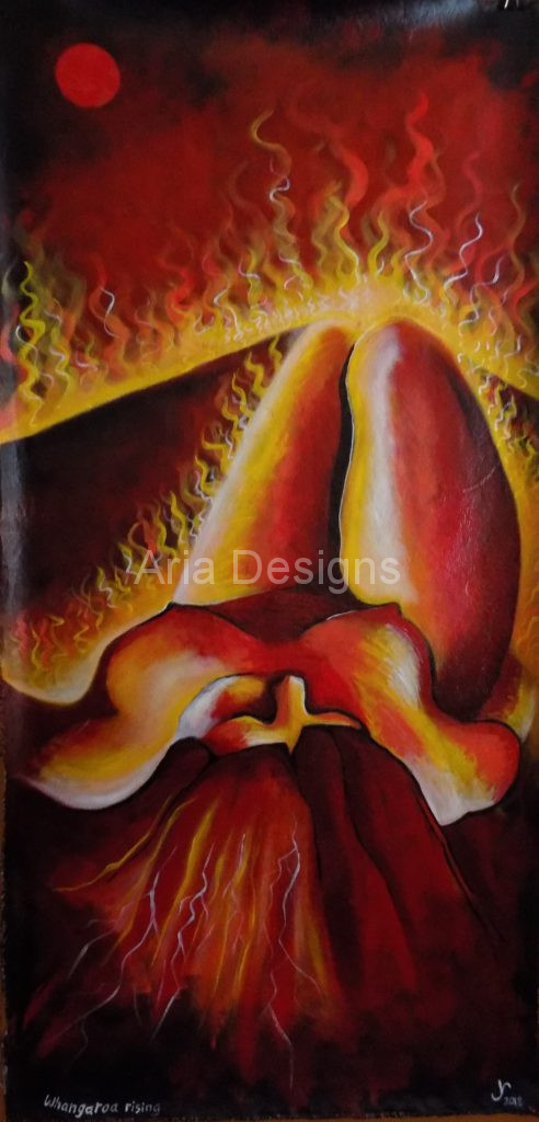 This event accredited to Hine-nui-te-po in labour, her body undergoing tremendous transformation as the whenua is terra formed.